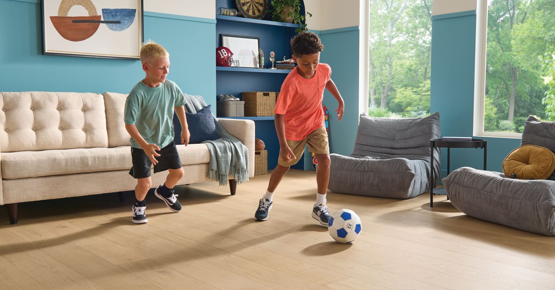 Available in 10 colors – each one channels the spirit of untamed American landscapes and embraces the allure of the great outdoors. Feel the subtle ridges of wire-brushed grain underfoot and see the interplay of light across the natural variation in each plank. Compatible with staple-down, glue-down, or floating methods, it’s ideal for any grade level.